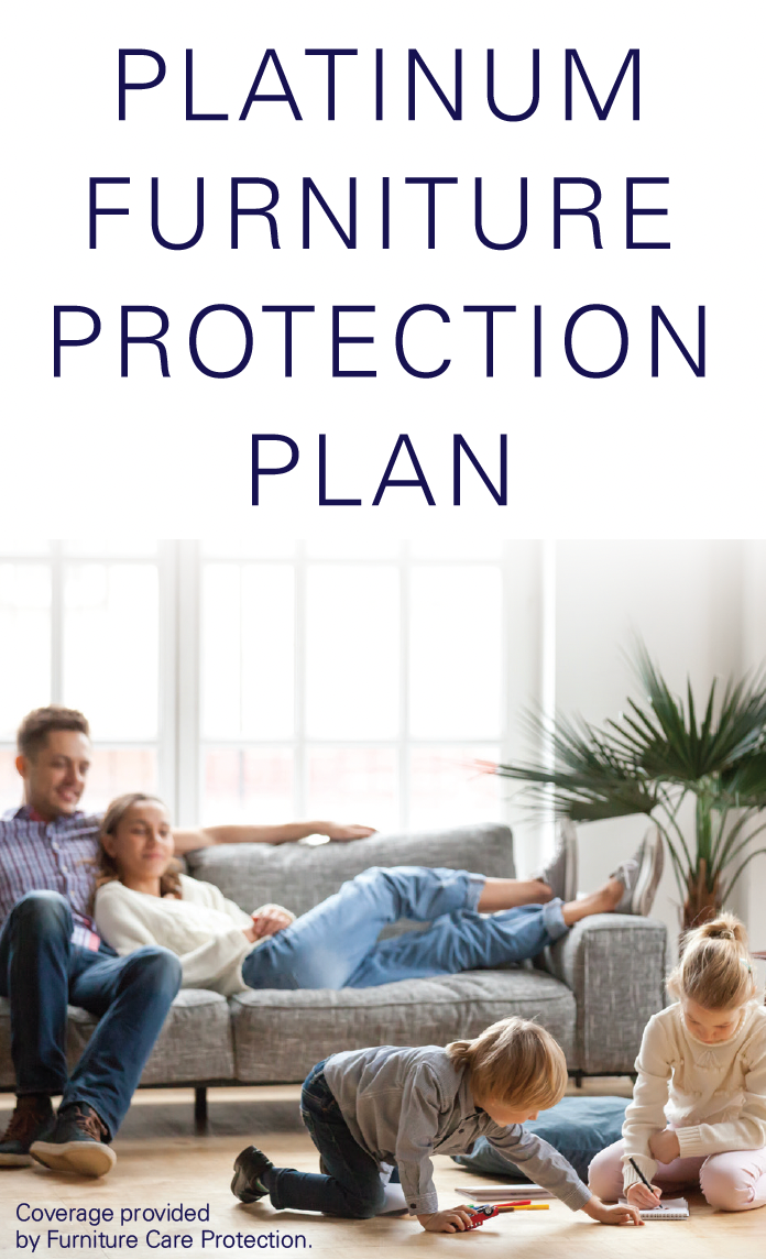 We want your new furniture purchase to last for years to come, which is why we offer a 3-Year Platinum Furniture Protection Plan. The plan gives you peace of mind so you can enjoy your home furnishings with your family, friends, and even your pets! The plan not only covers most warranty issues, but also includes accident coverage for rips, tears, stains, and even one occurrence of pet damage.