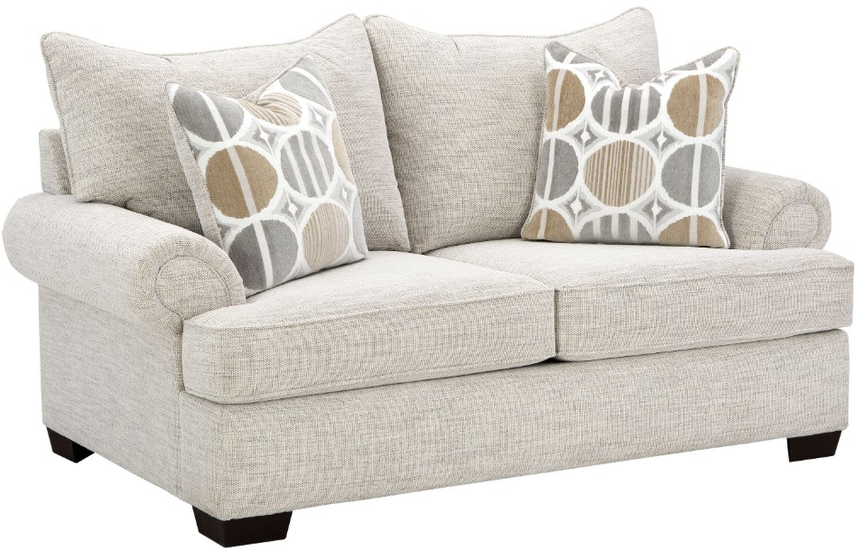 The Mallory Kristy Cotton Loveseat is a stylish and cozy two-seater that offers both comfort and elegance. It features a soft, neutral-toned fabric with decorative accent pillows, making it a great addition to any living space.Read More