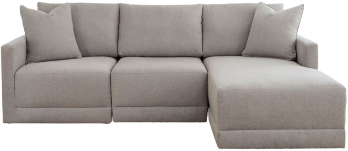 Searching for seating that expertly harmonizes form and function? This sectional with chaise has you covered. Making a sleek statement in spaces from transitional to modern, its neutral upholstery brings an airy, upscale feel to the clean-lined silhouette. And the sectional's modular design aligns with your busy lifestyle, enabling endless possibilities for contemporary comfort.Read More