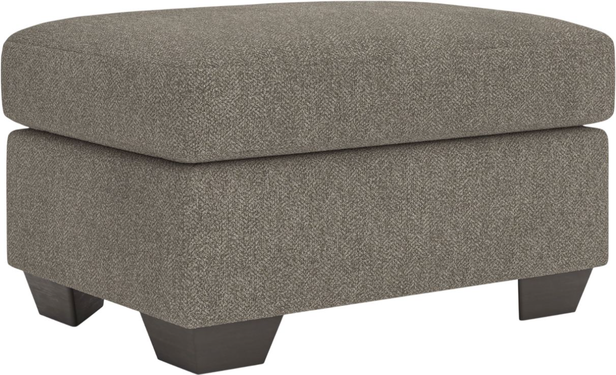 Transitional and right on trend. This ottoman's upholstery is a delightful change from the ordinary, with hints of soft brown giving the gray hue added depth. Whether you're hosting friends and family or relaxing solo, this ottoman invites homey, comfortable character into your space.Read More