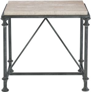 Crafted from honed travertine stone and antiqued steel, this end table delivers architectural style with a luxurious look.Gather around this Galesbury end table. Featuring a laminated honed travertine stone top and solid and tubular steel base and stretchers in antique silver finish. This end table adds a subtle elegance to your living room.Read More