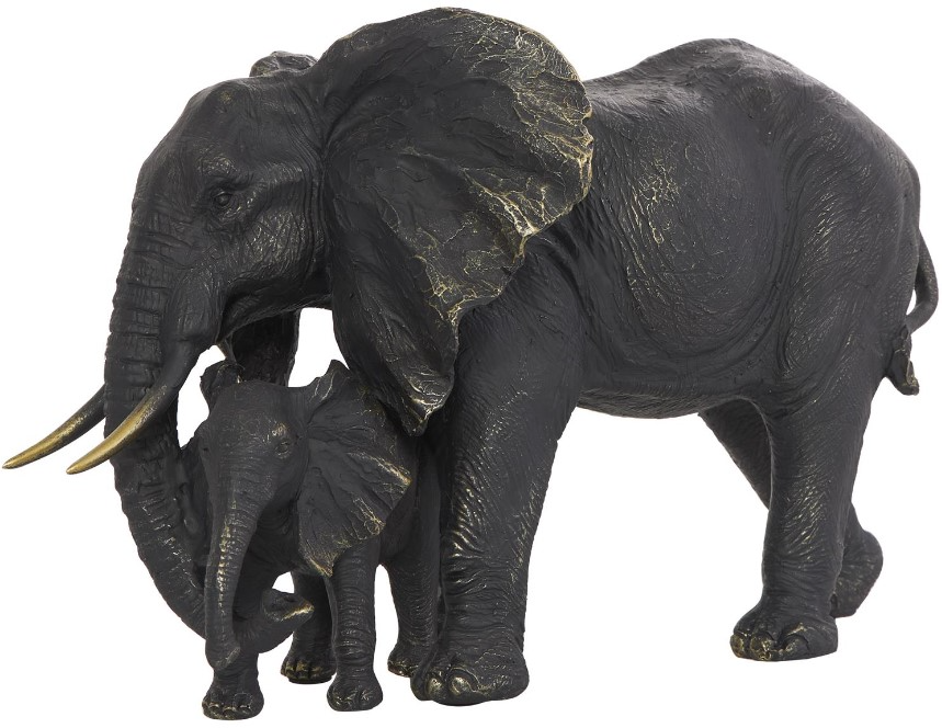 Designed with a free-spirited charm where vibrant hues, eye-catching patterns, and whimsical accents transform your space and showcase your personality. Made from a blend of resin and stone powder, this elephant statue strikes a balance between durability and artistic expression. The polystone elephant sculpture showcases a black color with gold accents.Read More
