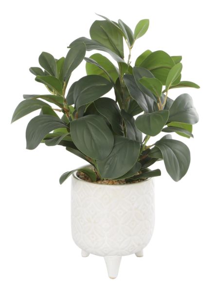 Faux plant decor is shaped and crafted from plastic, with intricate details to give it a realistic design, then secured in a white ceramic pot for support and structure