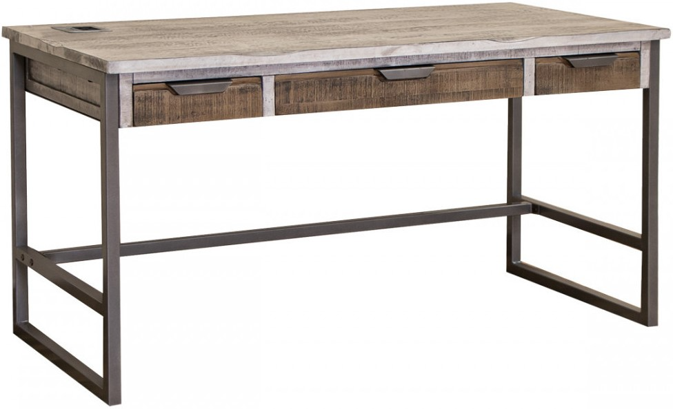 Desk includes a double USB charger and double outlet port.