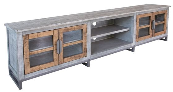 The Mitra collection tv stand is made with 100% solid mango wood and features a multi-step lacquer finish. The contemporary iron base adds a mixed-media look and value. Its fixed shelves are great to keep your books and minimal decor in place.Read More