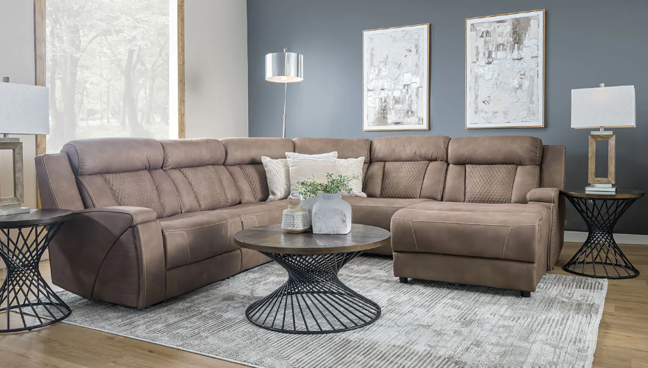 Designed for comfort, convenience, and style, our Chadwick power reclining sectional is the perfect centerpiece for your living room. Upholstered in a rich brown fabric that’s both soft and durable, this modular sectional offers head-to-toe relaxation with power reclining at both the headrest and footrest. The seating features upgraded 2.2lb high-density foam with pocket coil construction and a fiber wrap for plush yet supportive comfort. Hidden cup holders in the recliner arm provide a sleek touch of functionality, while the console includes built-in storage and a wireless charging pad to keep your essentials close and your devices powered. Whether you’re hosting a movie night or stretching out for a nap, our Chadwick collection delivers modern comfort with thoughtful design.Read More