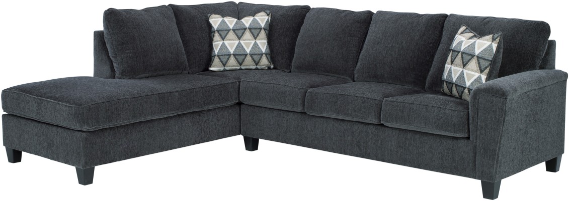 Covered in a smoke gray chenille upholstery loaded with plush texture, this less-is-more contemporary sectional is dressed to impress with angled side profiling and a track arm wrapped with a layer of pillowy softness for that little something extra. Open-ended chaise adds to this sectional’s swank look.Read More