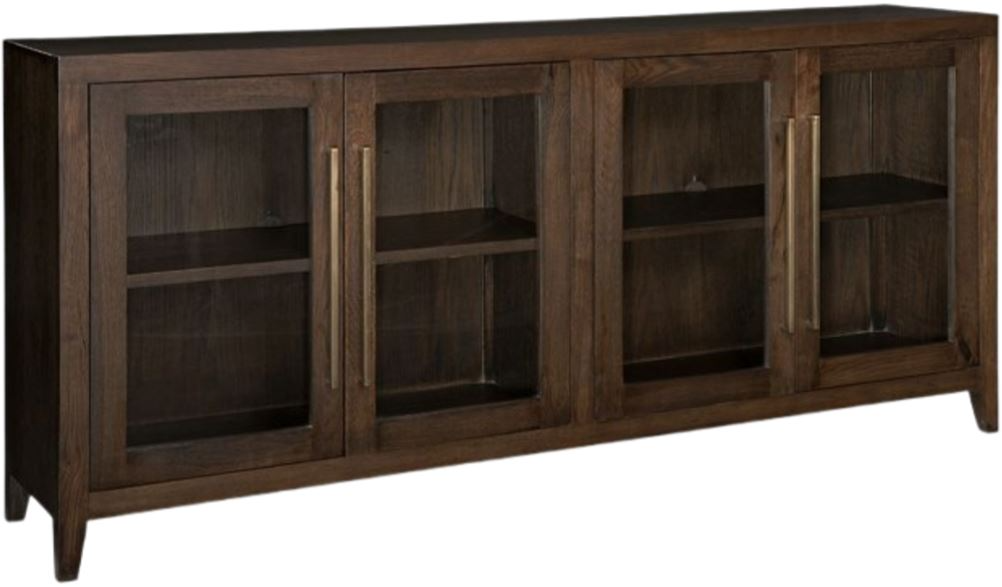 Chic and sleek, this accent cabinet satisfies your taste for contemporary design. Its dark brown finish is neutral and refined, while antiqued brass-tone hardware adds a touch of glamour. And with glass door fronts and two shelves, it's easier than ever to display and store in striking style.Read More