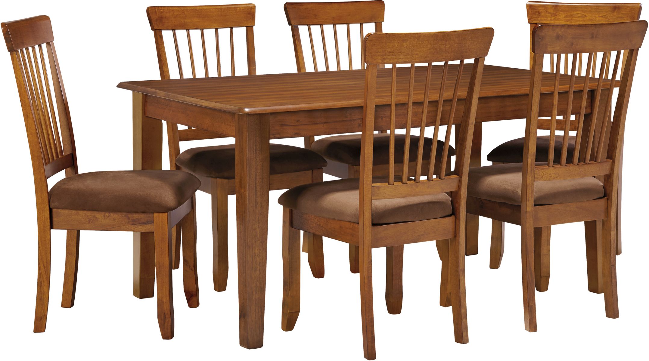 This versatile 7-piece dining room set incorporates decidedly rustic flair. Simple and clean lined, with stylishly tapered legs, it’s a look that easily fits, whether your aesthetic is vintage, country or traditional. Upholstered side chair has a classic spindle back and seat covered in easy-to-maintain microfiber.Read More