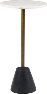 Marvel at the marbled mastery of this high-end accent table. Made of beautiful white marble, the round tabletop is supported by a sturdy gold tone pedestal on a black marble base. With a sleek, tapered profile, this space-saving table is striking from every angle.Read More