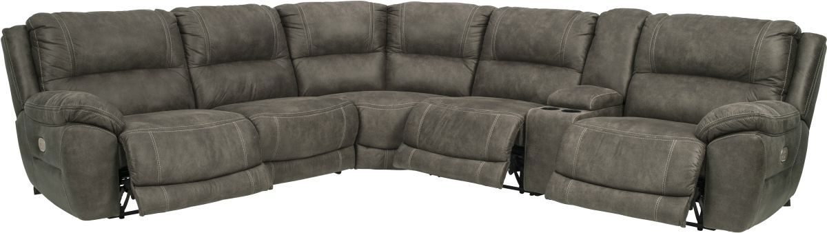 Load up on comfort and contemporary style—without hogging up space—with this power reclining sectional. Wrapped in a heavyweight padded faux leather with a weathered effect that looks so natural.Read More