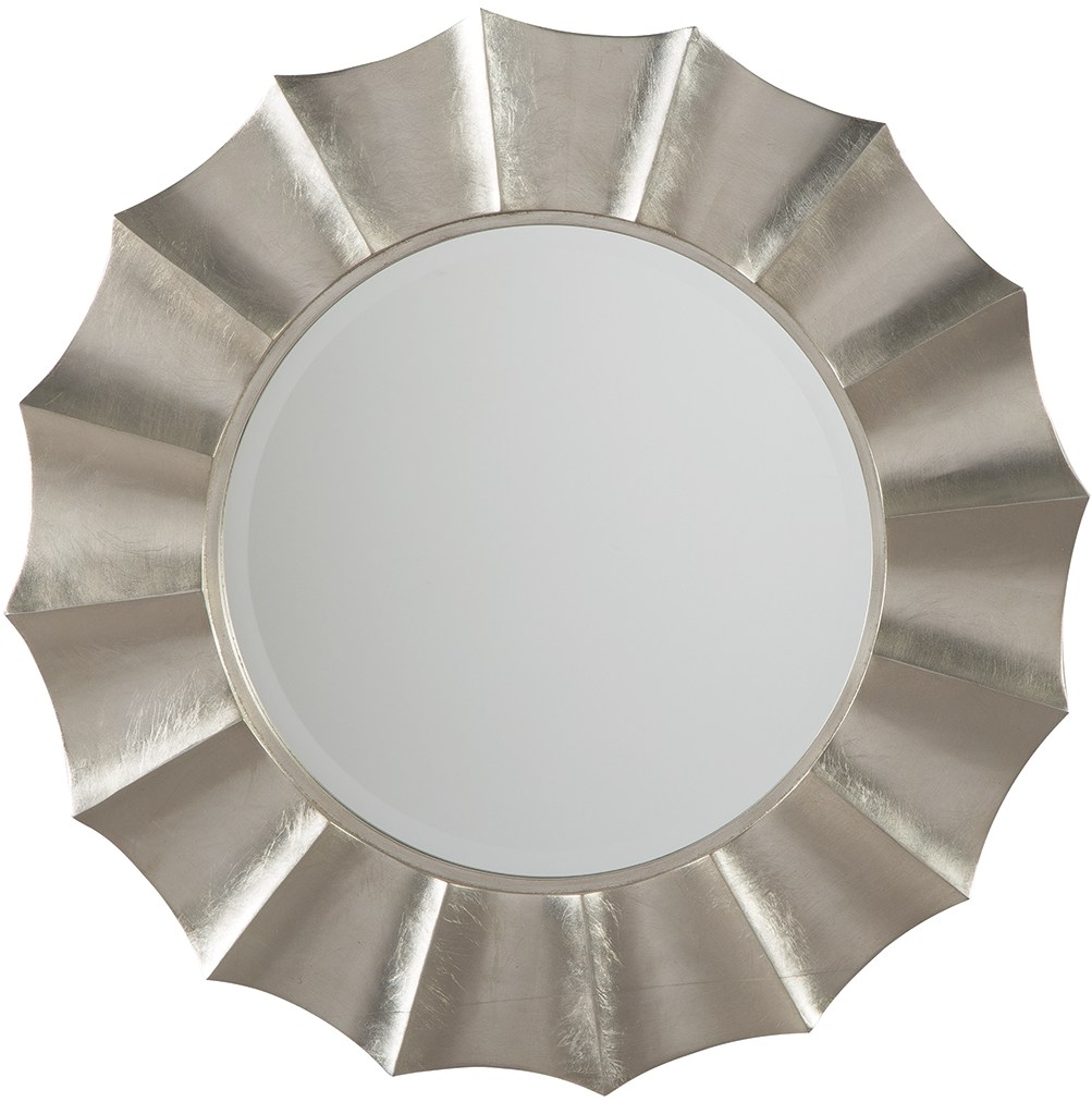 Stage décor spaces and walls with the round shape of the Elsley mirror in a lustrous silver-tone finish.