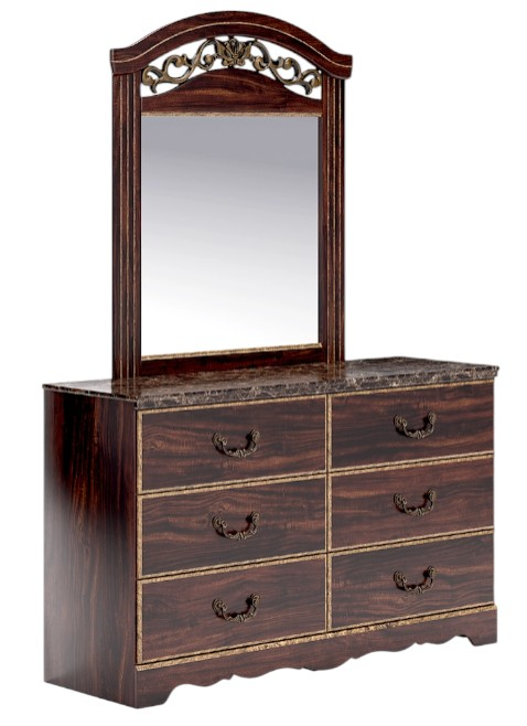 Timeless and classic, this dresser with mirror offers a grand design accented with rich hues and eye-catching details. Stately from every angle, its sophisticated elements blend together to display your love of traditional aesthetics. The mirror further elevates the look with ornate detailing at its crown.Read More