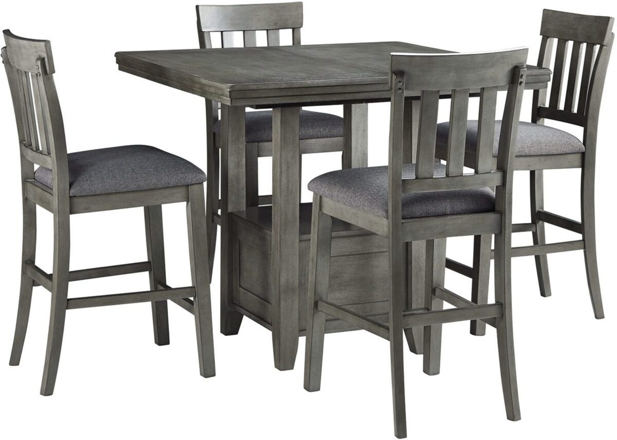 Cool and on-trend. This counter height extension table sports an antiqued gray color for a contemporary-yet-casual feel. The table features a storage base and removable leaf for extra seating room, making it a breeze to clear off clutter and expand your table space. Dining with friends and family has never been so stylish.