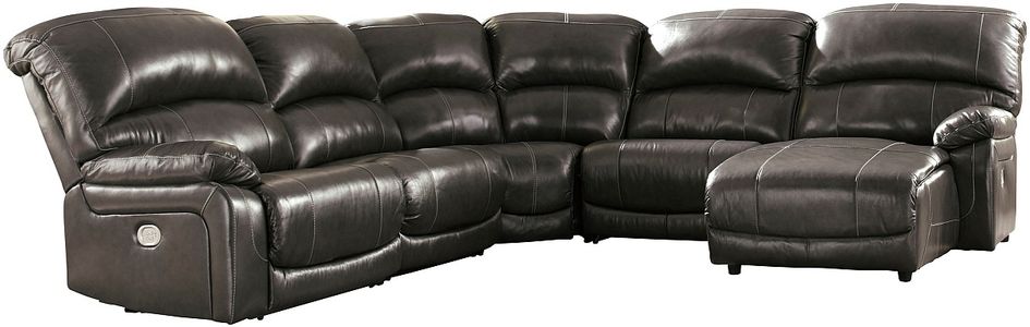 This luxuriously cozy 5-piece reclining sectional makes you happy to be at home. Supple leather on the seating area is as comfortable as it is attractive. Faux leather upholstery on the sides and back is easy on the eyes and the wallet. High back design provides the support you need. From the Easy View™ power headrest to the footrests, you're in control of your relaxation.The press back power chaise offers a wider seat—ideal for getting your legs up. Just plug in your device to the USB charging station and sit back, relax and enjoy your space. Assembly required for this product.Read More