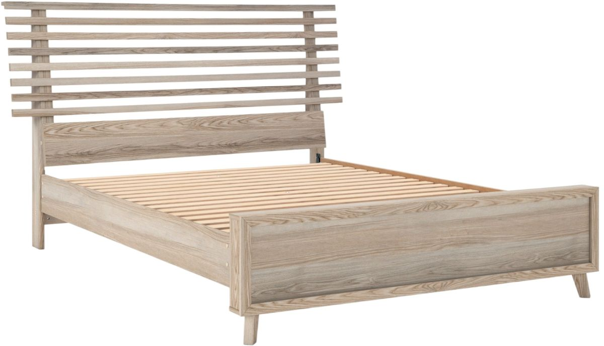 Modern meets neutral and sophisticated in this queen panel bed. Its clean lines and open slat headboard wake up your bedroom with eye-catching appeal. The natural finish and subtle replicated wood grain speak casual simplicity, creating a smart and stylish bedroom retreat. A refreshing take on style, indeed.Read More