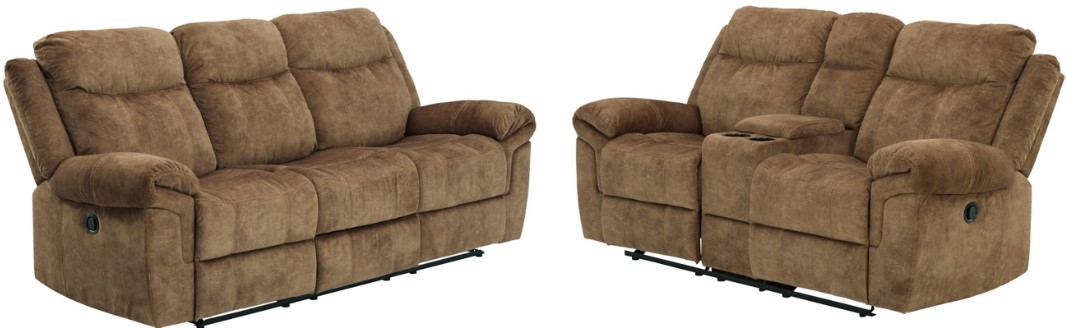 Includes reclining sofa and reclining loveseat with console