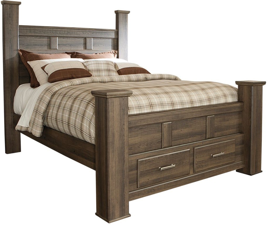 Get the look of posh barn wood without setting foot in a salvage yard. Replicated rough-sawn oak of this queen panel bed with storage has a vintage finish that is reminiscent of a timeworn family heirloom. Assembly required for this product.Read More