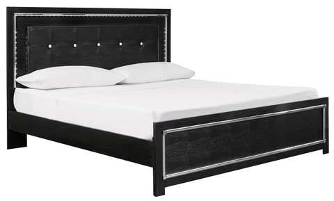 Rest easy. The luxurious look you’ve been dreaming of is yours for the taking, at a price sure to put you at ease. This king upholstered panel bed's dark finish, faceted chrome-tone accents and LED lighting exude Hollywood-chic style to the max. Padded windowpane stitching on the sleek black upholstery infuses a sumptuous look that’s upscale, indulgent and utterly on trend. A wireless remote allows you to control the color and brightness to suit the mood.Read More