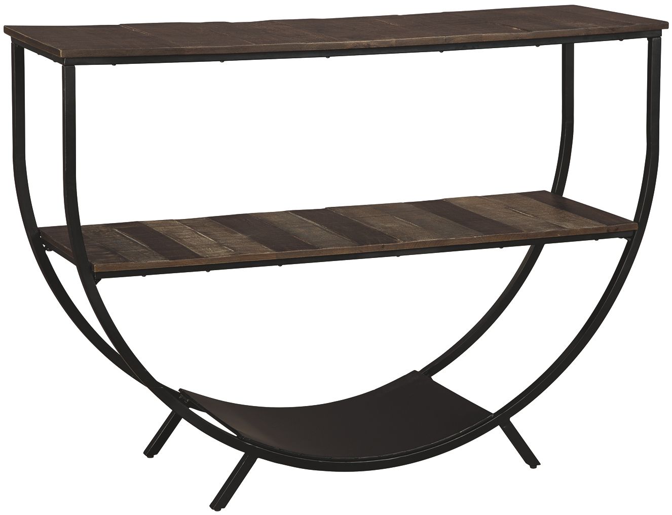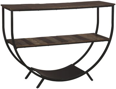 No ordinary take on modern farmhouse styling, this console sofa table serves up shapely style. Brown, gray and white hues give the distressed top and shelf loads of cool character. Curvaceous black metal base brings a fresh twist into the mix.Read More