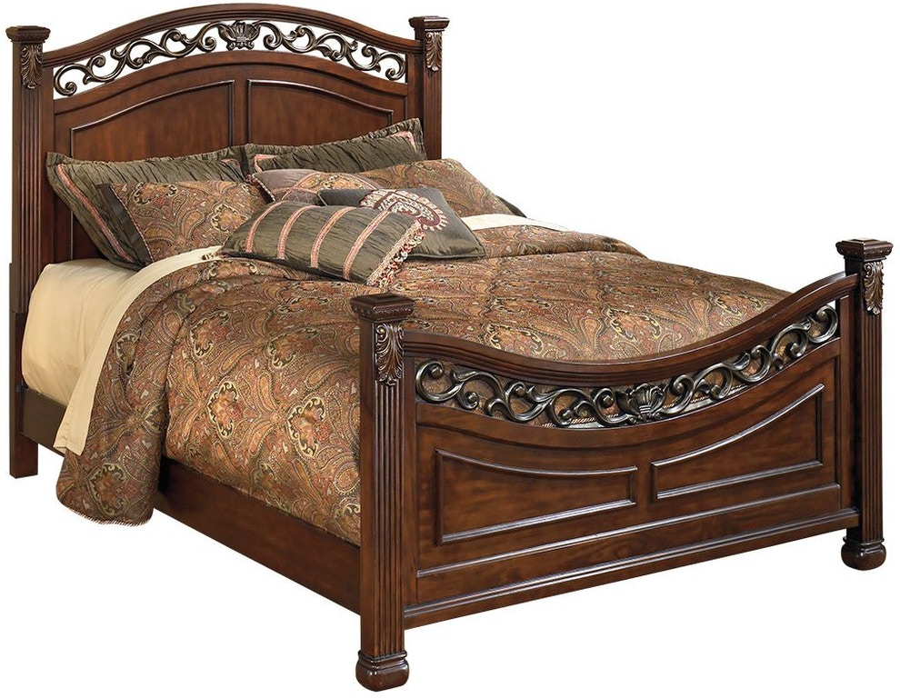 With the fluted pilasters beautifully adorned with leaf form corbels and cast foliage filigree bathed in a warm metallic color finish scrolling across the bed and mirror, the rich elegant design of the “Leahlyn” collection flawless captures the true essence of Old World styled furniture. Assembly required for this product.Read More