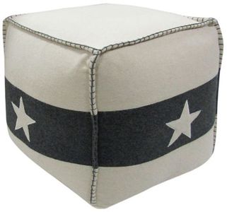 Pouf. Hand Quilted . Hand Stiched Seams with Applique Star Design in White and Black. Wool Felt with Polystyrene Bead Filling. Spot Clean Only.Read More