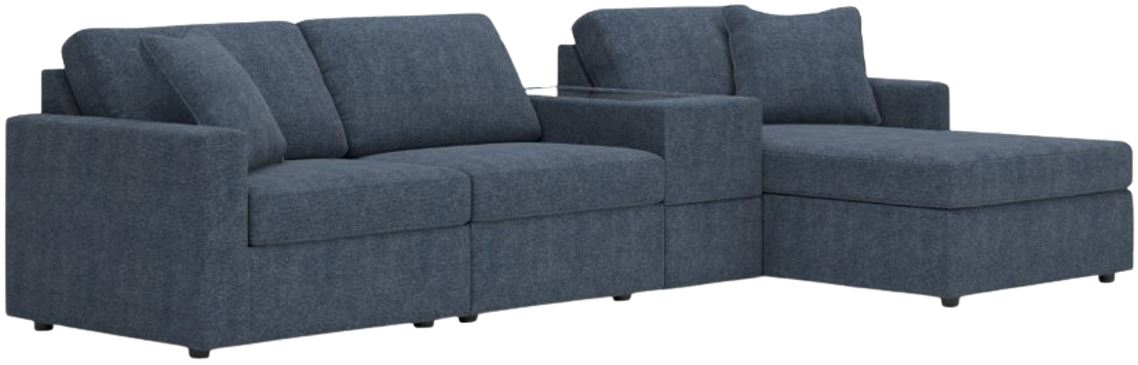 Includes 4 Modular Pieces: Left-arm facing corner chair, armless chair, console with storage and right-arm facing corner chaise