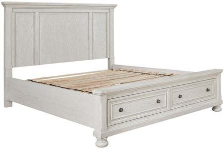 Elegant, timeless furnishings take your bedroom to the next level. Nothing does that better than this king panel storage bed. The antiqued white finish with a wonderful grain texture radiates sophistication, while the dark bronze-tone hardware adds an ornate touch to the handy storage drawers.Read More