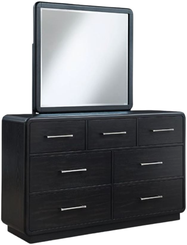 Inspired by art deco design, this softly shaped dresser with mirror makes a lasting impression in a simply stunning way. Its magnificent curved silhouette is enhanced by a rich layered black finish on the textured wood grain surface. This is the statement piece you’ve been dreaming of to elevate your contemporary inner sanctum.Read More