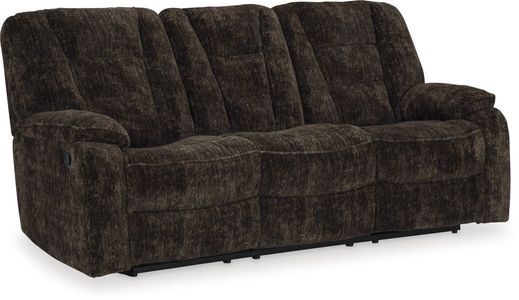 Lush and plush upholstery. Sink-in softness. Generous armrests. This contemporary reclining sofa brings a feel-good experience home in every way, shape and form. Beyond the ample snuggle space and pillowy softness, the added perk of a concealed drop-down table takes it over the top. Relax and settle in for comfort.Read More