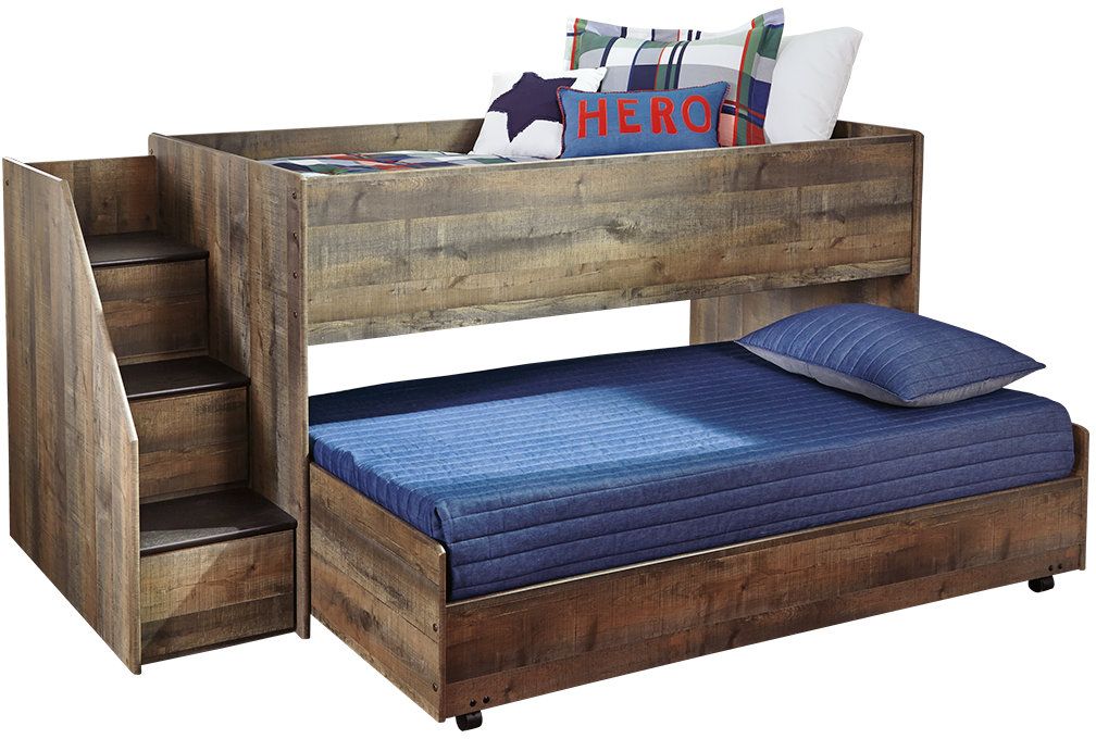 Whether she loves horses or he's a cowboy at heart, Trinell loft bed with storage matches their authenticity. Rustic finish, plank-style details and nailhead trim pay homage to reclaimed barn wood, making for a chic look loaded with charm. Mattresses available, sold separately.
