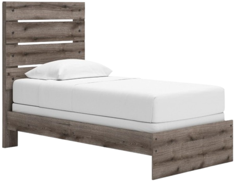 Combining a casual aesthetic with functional flair, this twin panel bed suits styles from rustic to industrial. The headboard's slatted panel design has an easygoing character that's sure to please. Dressed in a chic weathered gray hue, it brings a charmingly curated vibe to bedtime.Read More