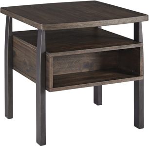 Keep your space stylish with the Vailbry rectangular end table. With a lower cubby, open shelf above, AC power supply, and USB charge ports this table is convenience wrapped in a handsome finish.