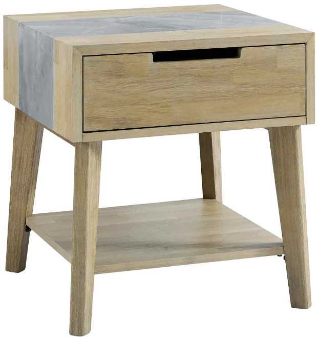 Mid-Century Modern styling comes in a Side Table for the Living Room or Bedroom. The Calgary End Table makes for a great companion with canted legs and a natural acacia finish that is accented with a durable, easy care Sintered Stone inlay that looks great.Read More