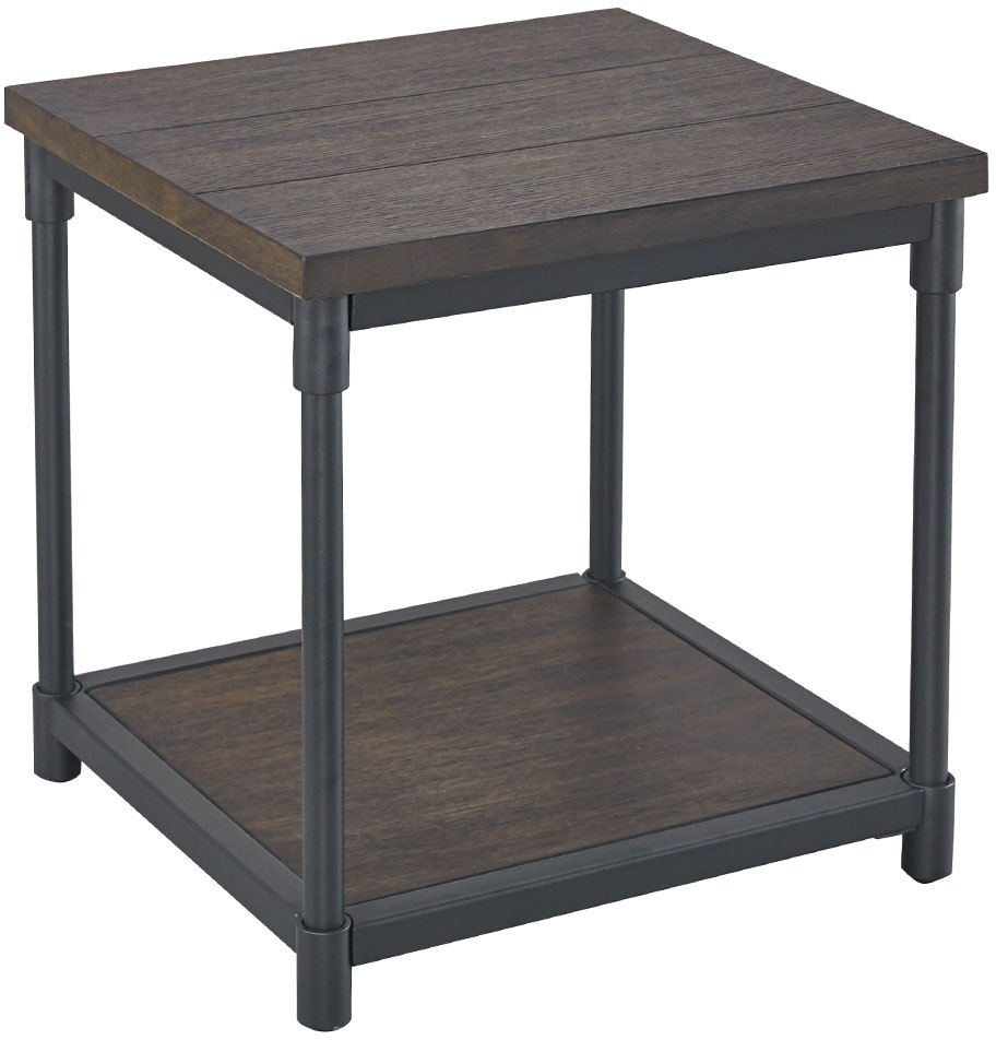 The Prescott End Table by Steve Silver Co. combines rustic charm with modern elegance. Featuring a rich smoky oak top and a sleek black metal frame, its compact design adds style and functionality, perfect for any contemporary space.Read More