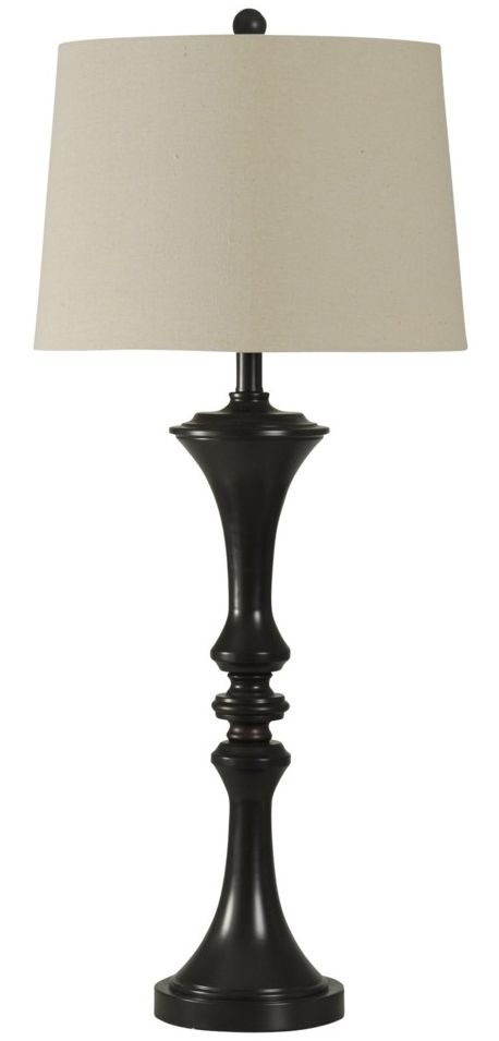 StyleCraft Accent Lamp with dark brown steel base and natural linen shadeRead More
