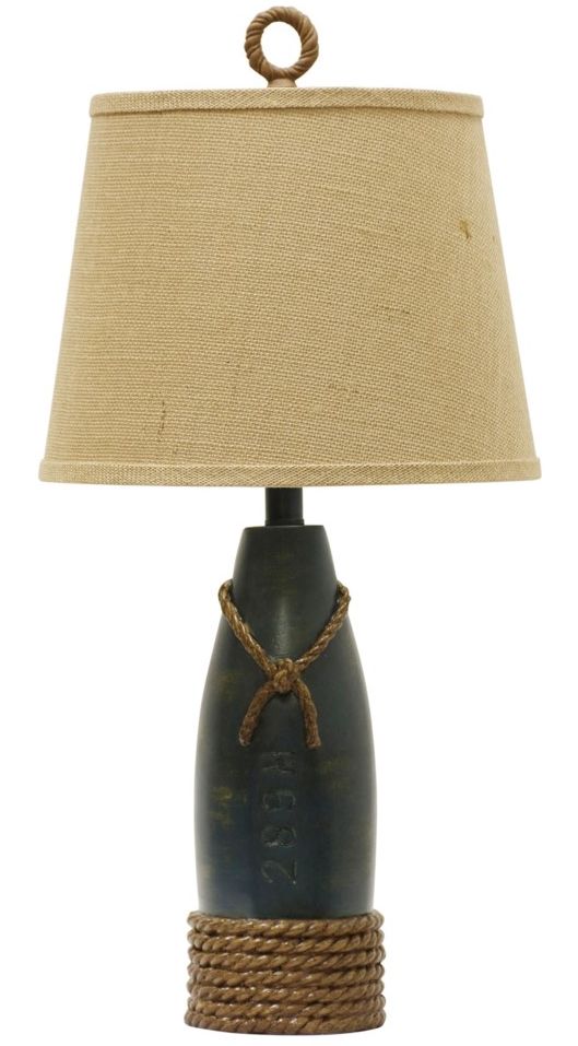 StyleCraft Coastal Table Lamp with sea blue colored base and canvas trimmed harback shadeRead More