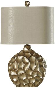 StyleCraft Contemporary Georgian Silver Lamp with oval fabric shade and heavy clear styreneRead More