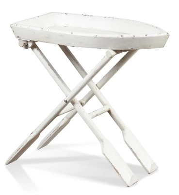 This row boat-designed folding tray Oar Accent Table from Stylecraft is made from solid fir wood and is shown in an antique distressed ivory finish that will complement your bedroom or living room decor.Read More